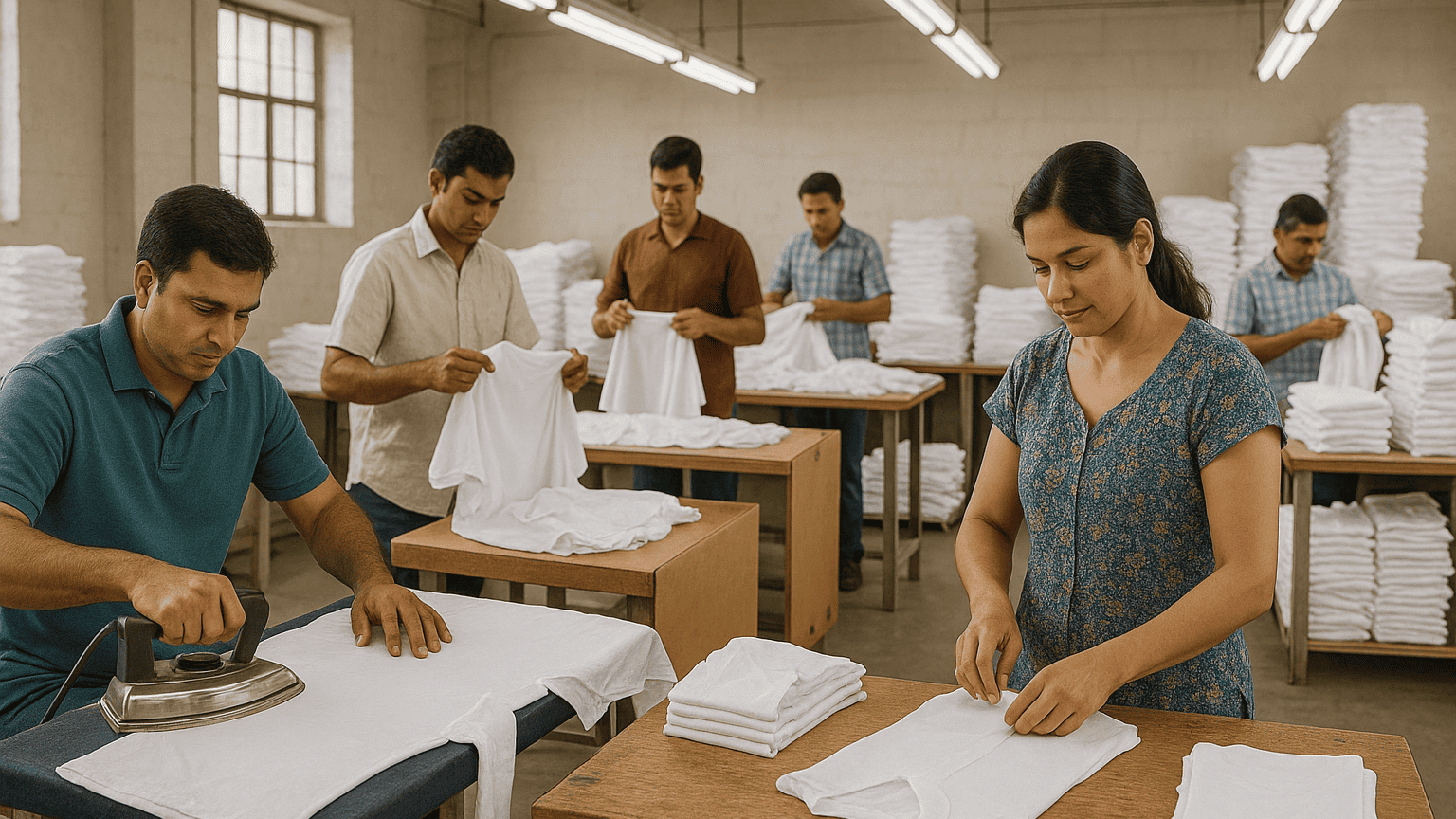 With vertical integration from our fabric manufacturing, we use in-house or partner-supplied poly-cotton, poly-viscose, and blended fabrics. Once approved, fabrics go through: