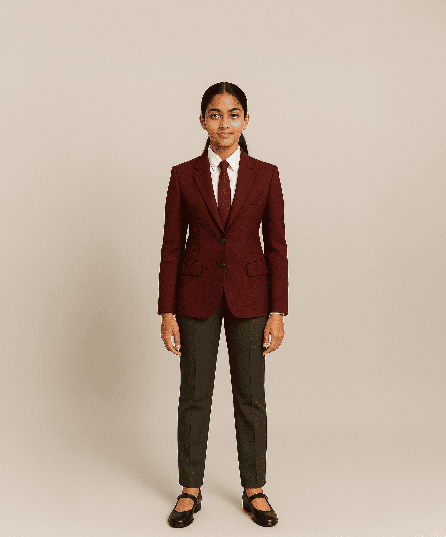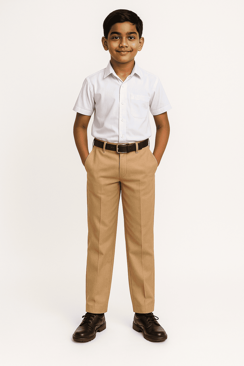 Complete School Uniform Set including Shirt, Pant/Skirt, Tie, Belt, Socks, and optional Blazer. Available in multiple colors, sizes, and custom school branding.