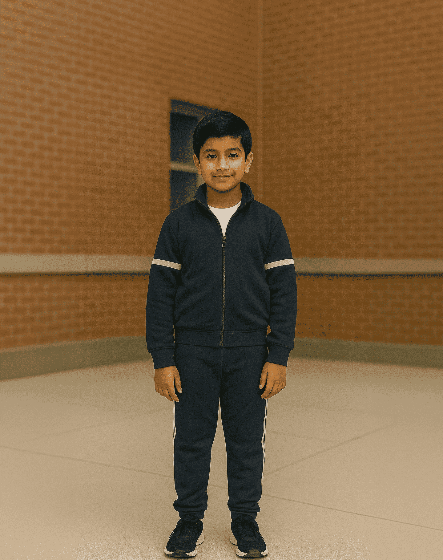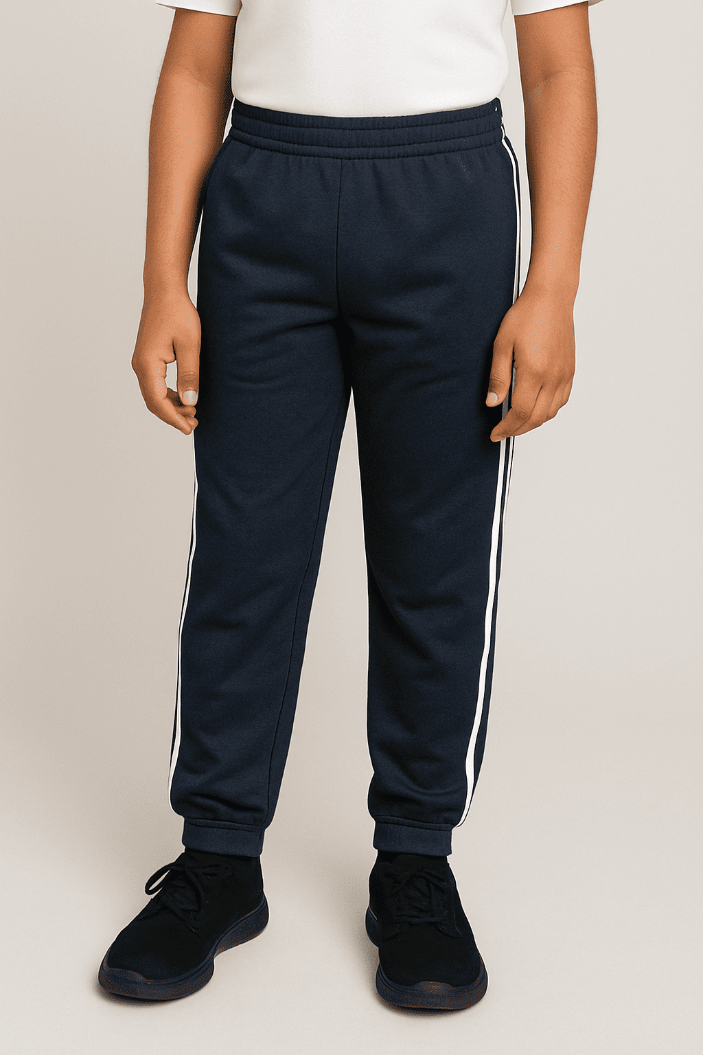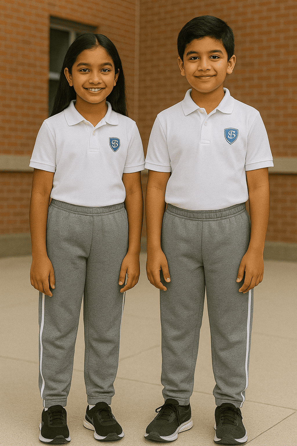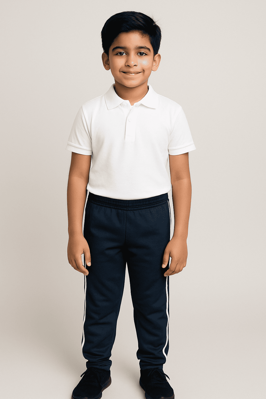 Active-fit School Sports Uniform Set with Track Pants, T-shirt, and optional Jacket. Breathable, stretchable, and quick-drying fabrics for all sports activities.